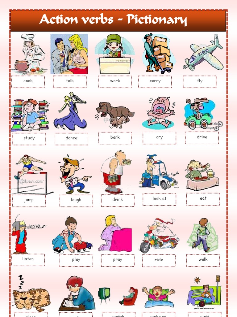The man stretched his arm before he threw the baseball. Glossary of action verbs the following compilation of action verbs is intended as a guide to common verbs used in writing job descriptions. This assists instructors when creating lesson and course objectives. An action verb is a word that implies the subject of a sentence is doing something or taking an action. Action verbs are words that express an action. I think you mean stative verb. Action verbs are words that describe what a person or thing in a sentence does. With diagramming sentences worksheets, organizers, verb searches, and flash cards, your child will be reading at the top of the class. As we all learned in grade school, a few basic verbs include run, walk, dance, jump, etc. An action verb explains what the subject of the sentence is doing or has done. Jason's best friend thinks of a plan. Mary sleeps on the couch. Bloom's taxonomy provides a list of action verbs based on each level of understanding.