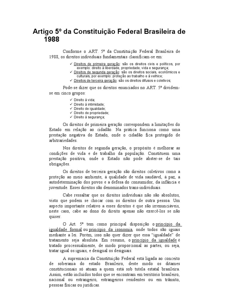 Artigo 5º constituição federal comentado. Isto acredito sumários de ensaio? Conselho de artigo de escola de esl. O artigo 5º da constituição federal (cf) de 1988 conta com 78 incisos que determinam quais são nossos direitos fundamentais para conhecer outras liberdades e direitos fundamentais garantidos na constituição de maneira didática e descomplicada, não deixe de visitar o site do projeto artigo 5º. A constituição é dividida em três partes principais: